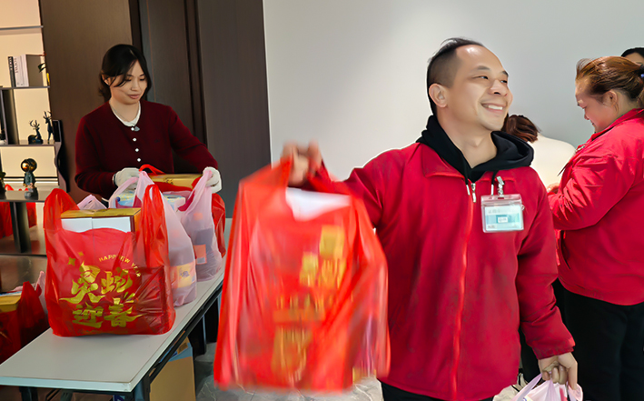领取现场井然有序,笑容洋溢在每位家人的脸上。沉甸甸的福利不仅带来了浓浓的年味儿,更传递着公司大家庭的温暖关怀。大家纷纷表示,这份贴心礼物让人倍感温馨,未来将以更饱满的热情投入到工作中,共创佳绩。
